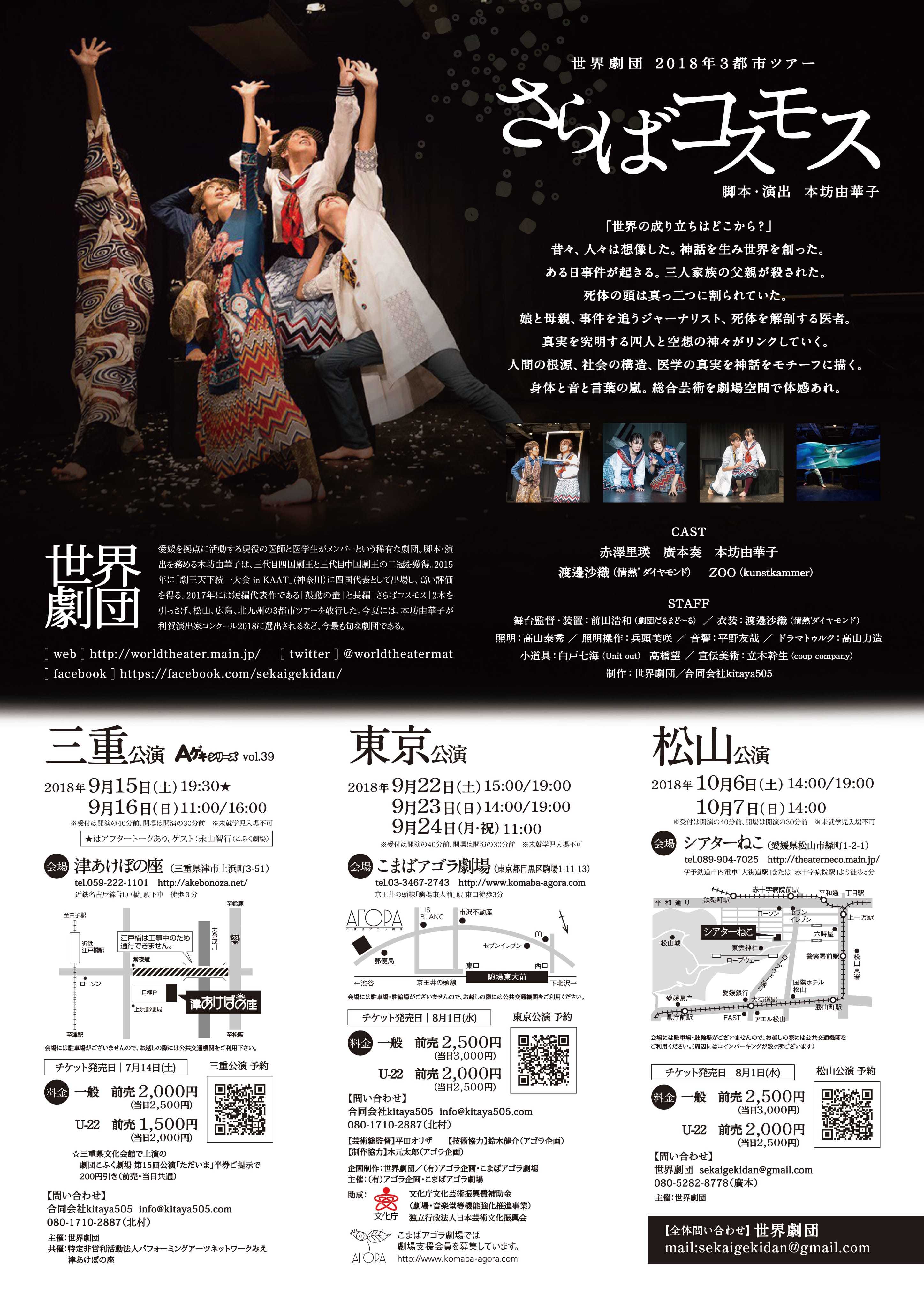 世界劇団「さらばコスモス」三重公演 チケット予約へ