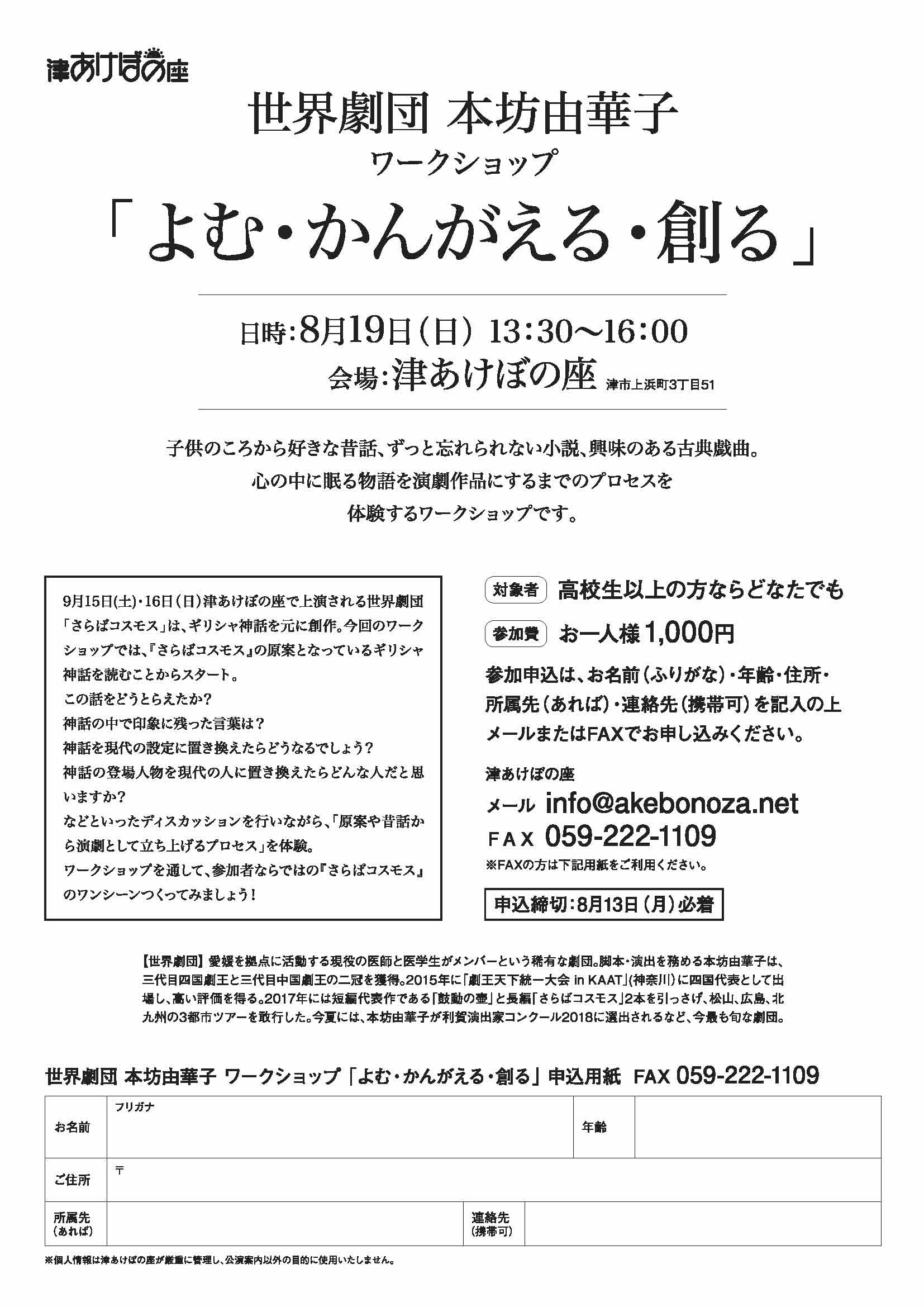 世界劇団 三重公演を前に、世界劇団演出の本坊由華子さんがお越しになってのワークショップを開催します。