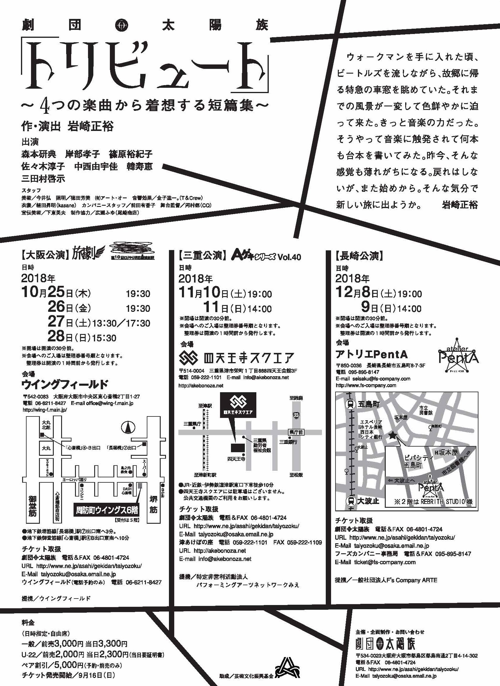 またこの公演は、大阪・ウイングフィールドから、三重・四天王寺スクエア、長崎・アトリエPentAを回る3都市ツアー。岩崎さんと繋がりの深い、三重・長崎の民間劇場が連携するのも注目の公演となっています。