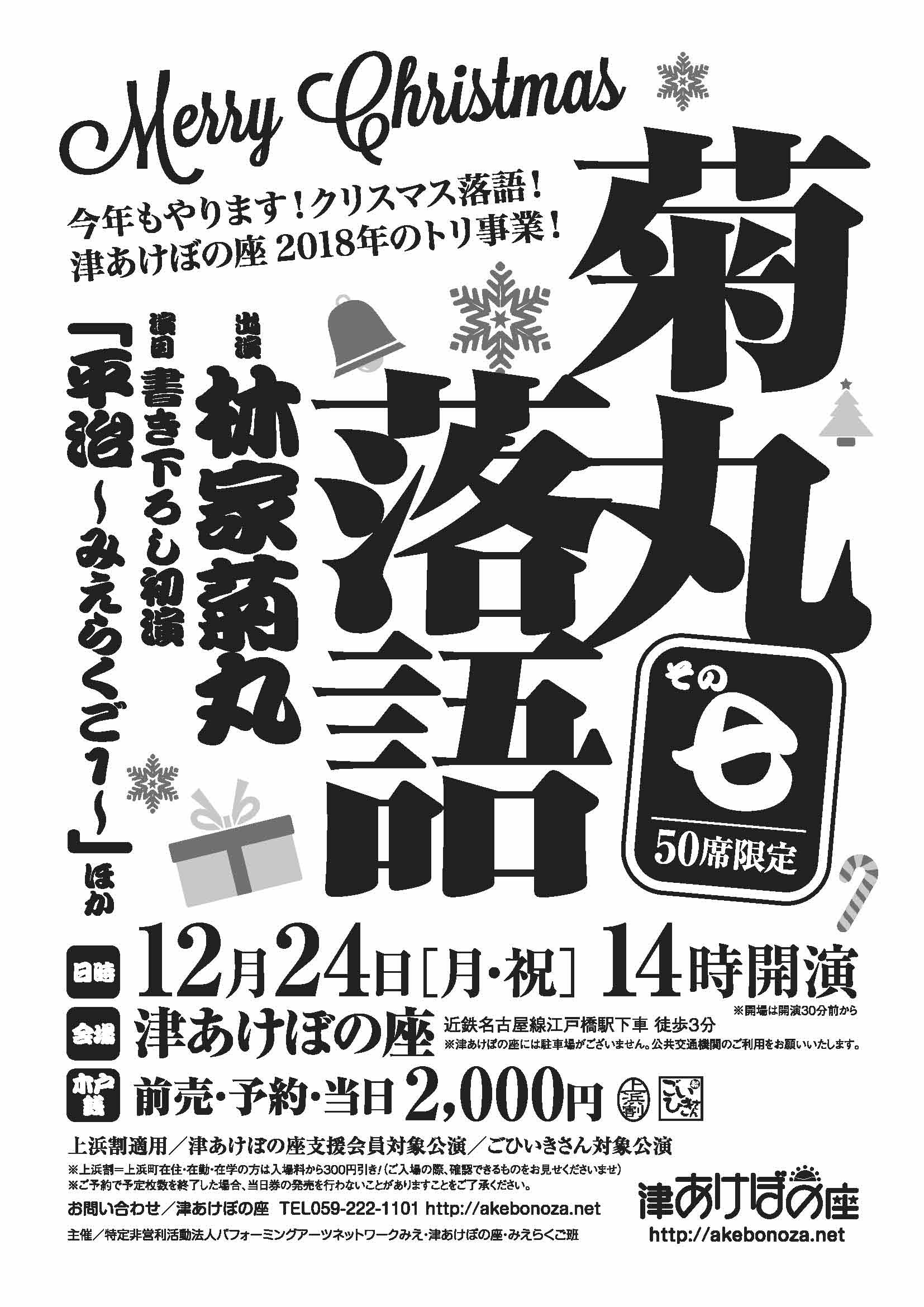 クリスマスは恒例の林家菊丸さんによる落語会。津あけぼの座開館以来の