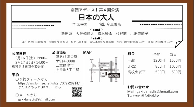 三重大学 劇団アディスト第4回公演「日本の大人」