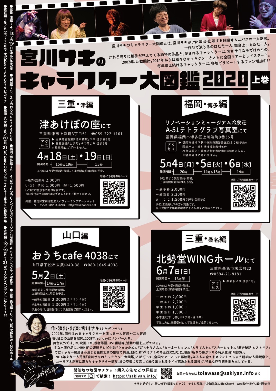 今回もどこかで出会ったことがあるような、でも宮川サキだからこそ演じられる様々な愛着あるキャラクターが舞台上に登場、開場中もそのキャラクターが居る可能性もありますよ!