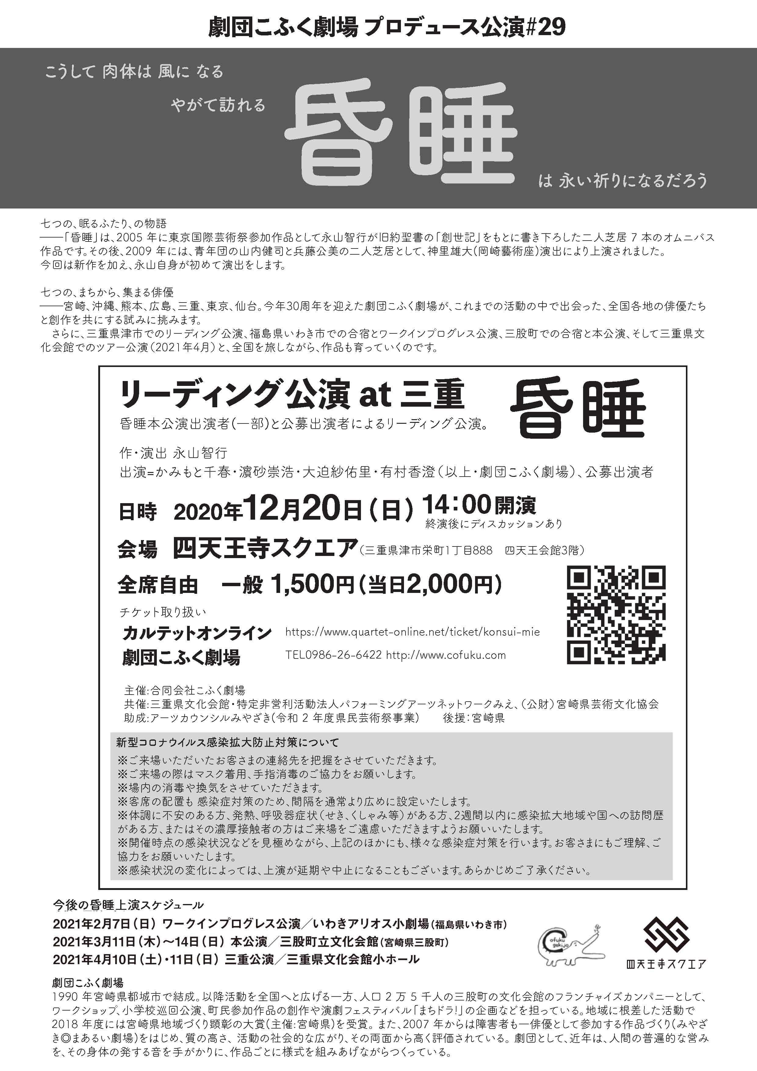 そのはじまりの企画として、三重で出演者を公募してのリーディング公演を行います。「昏睡」企画のスタート公演、是非ご来場ください。
