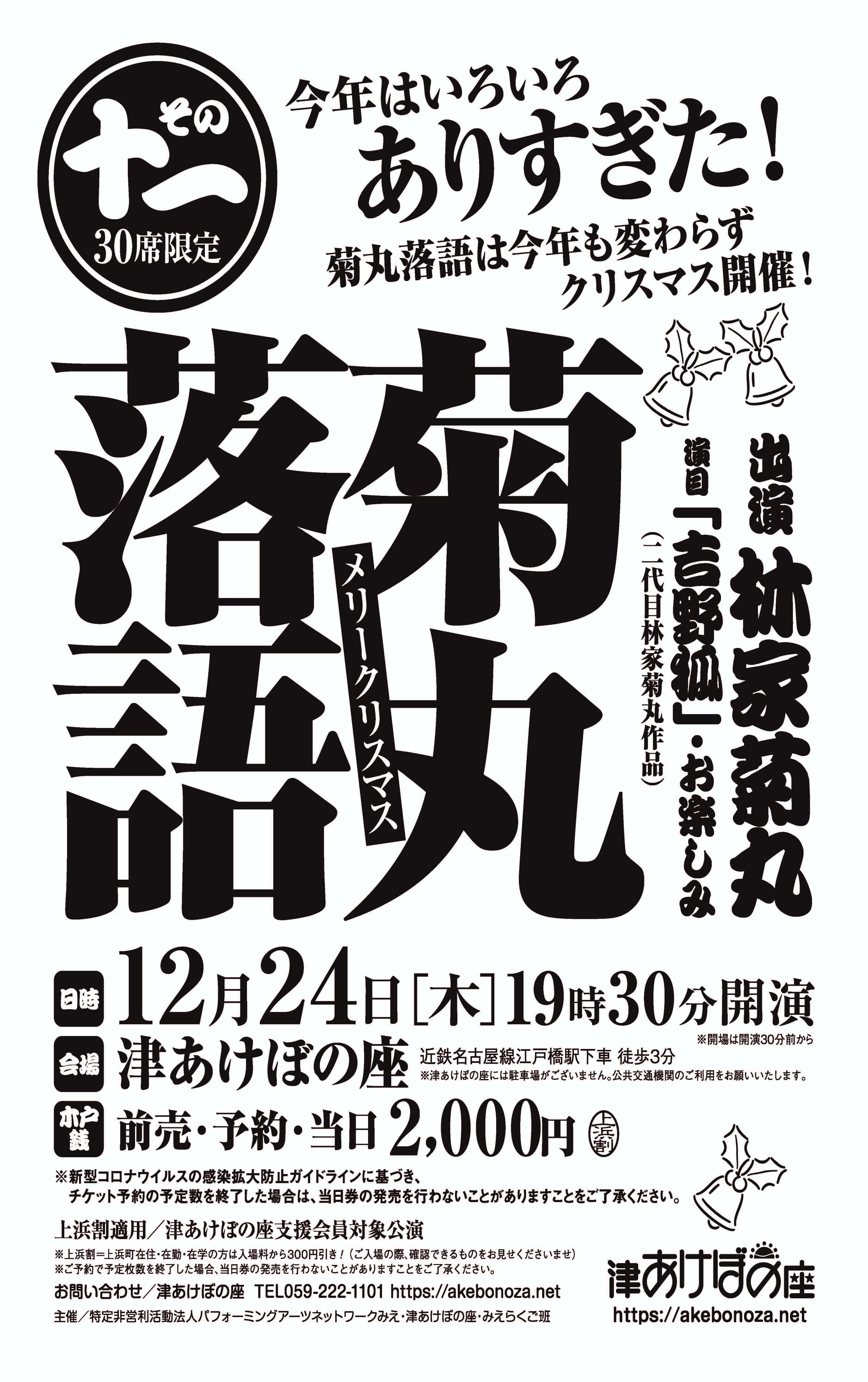 今年はいろいろありすぎた!クリスマス菊丸落語は今年も開催!