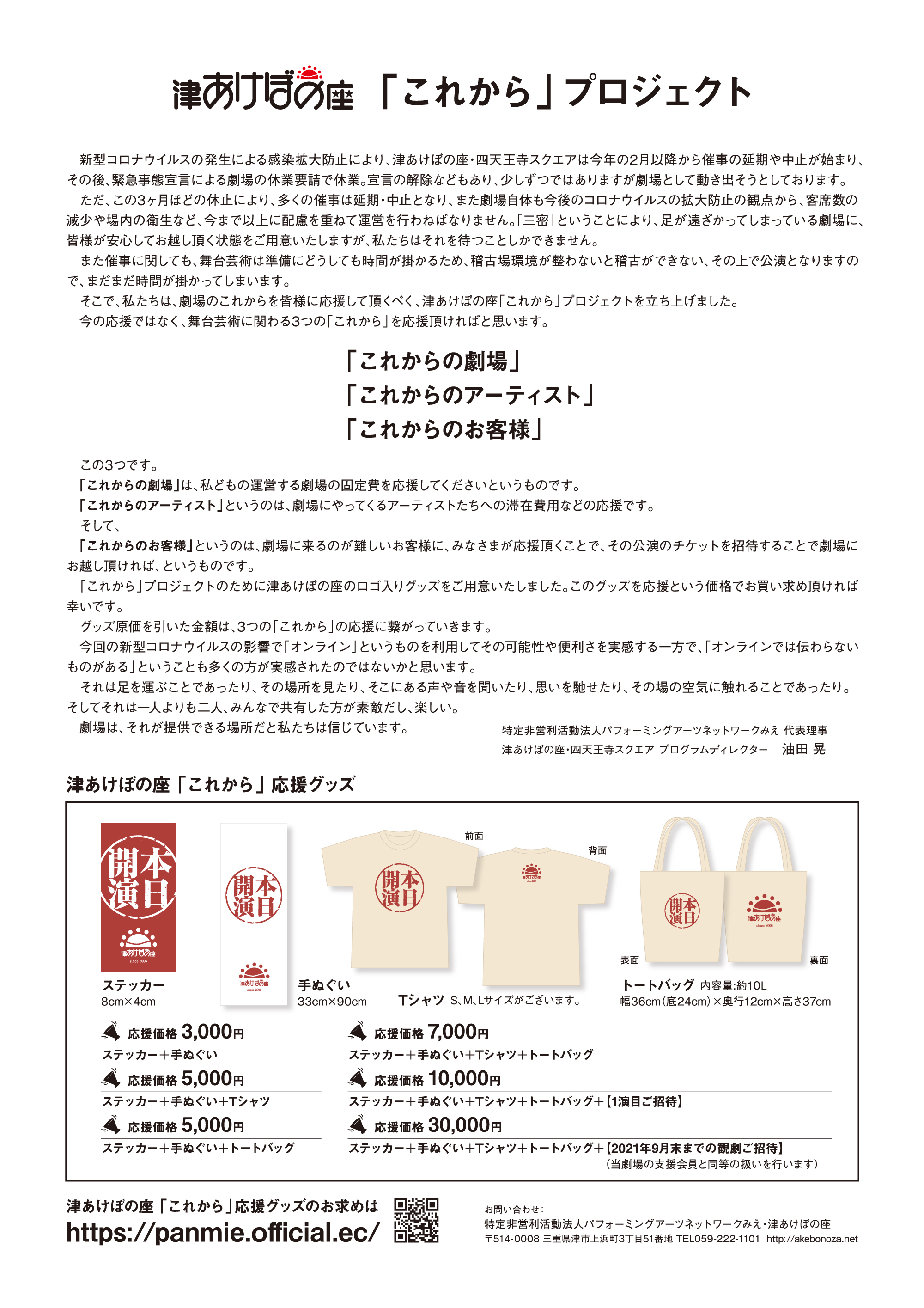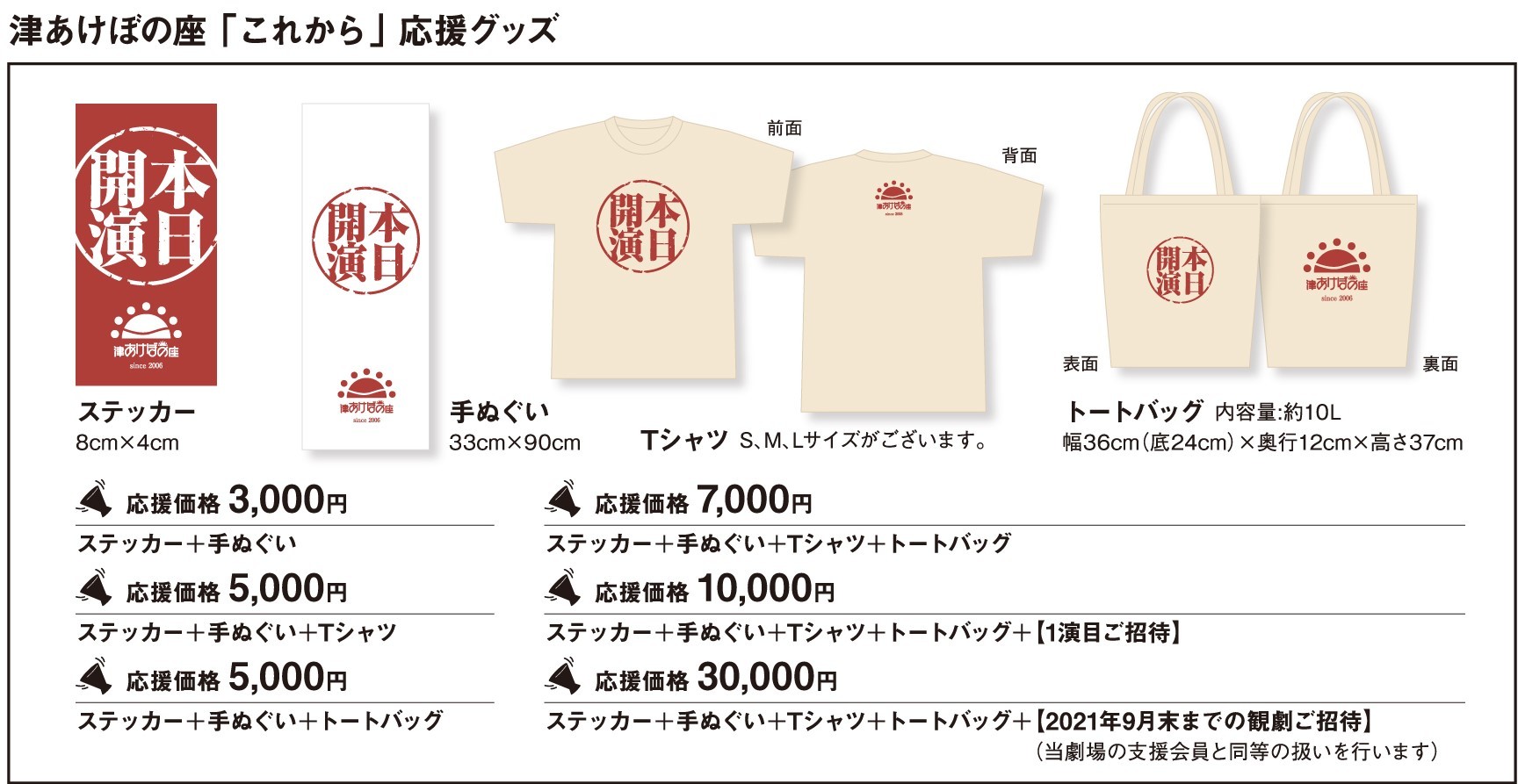 津あけぼの座「これから」応援グッズをご用意いたしました。このグッズを応援という価格でお買い求め頂ければ幸いです。