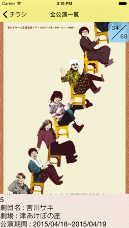 各劇場の演劇公演のチラシを一覧できるスマートフォン用のアプリです。