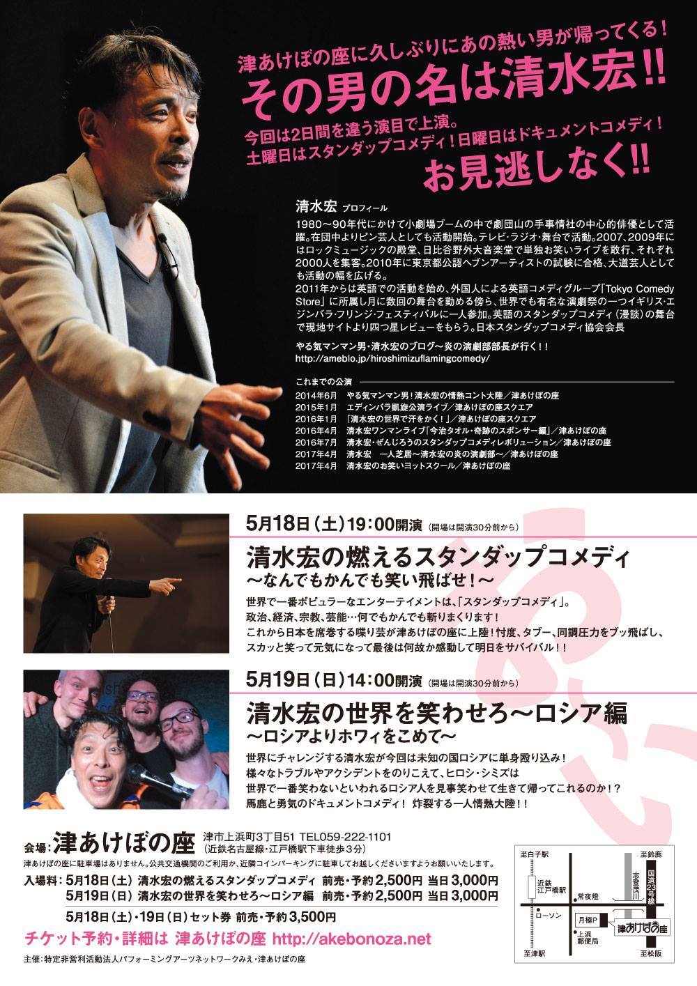 5月18日(土)清水宏の燃えるスタンダップコメディ~なんでもかんでも笑い飛ばせ!~