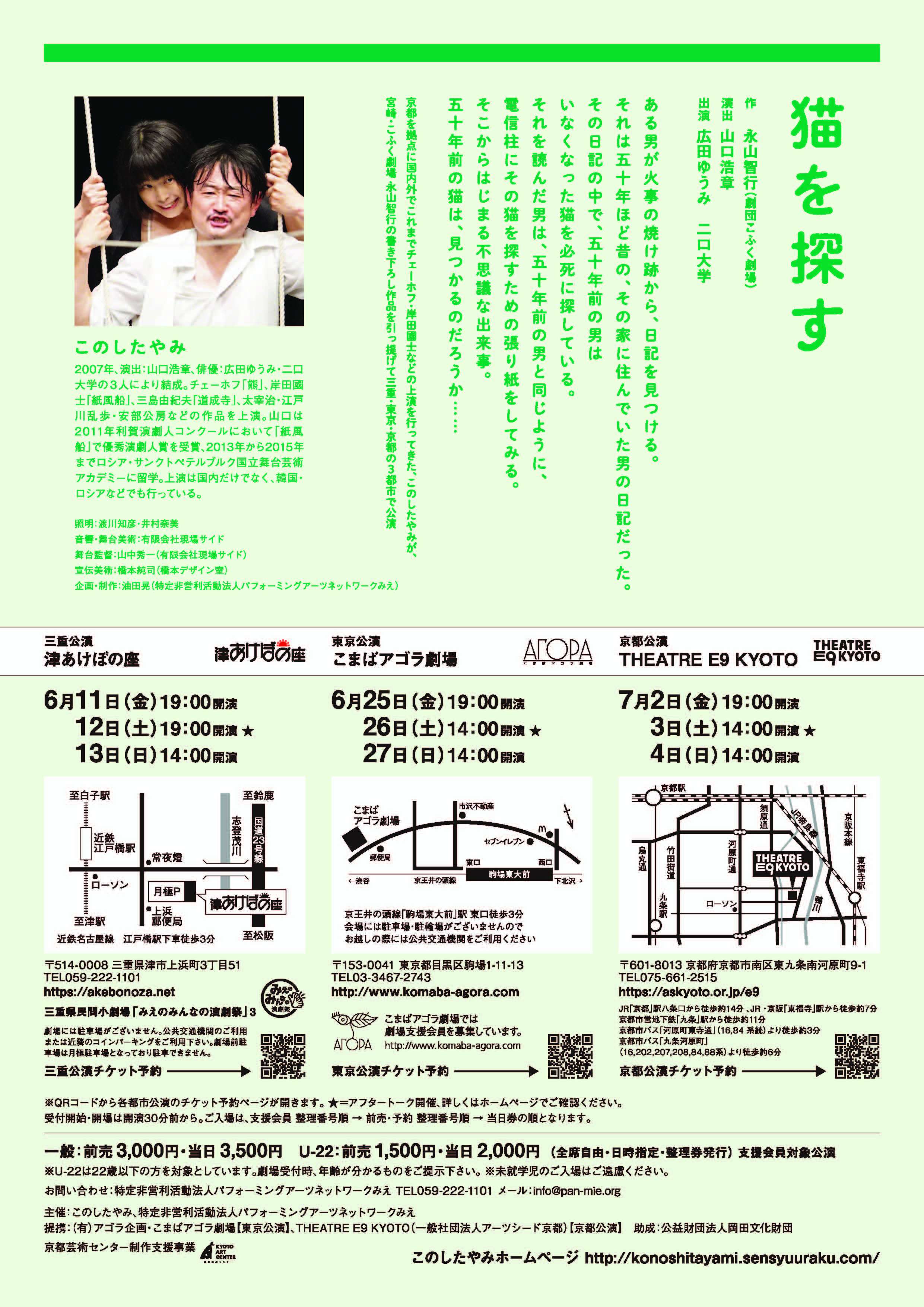 このしたやみ「猫を探す」は三重公演を皮切りに、東京・京都と上演いたします。