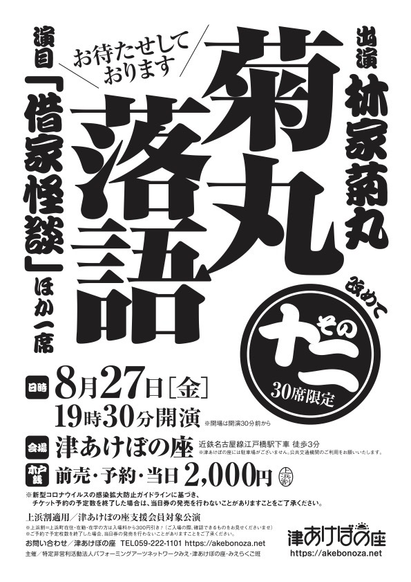 春落語がコロナ禍で延期、改めて夏落語で開催の運びとなりました。