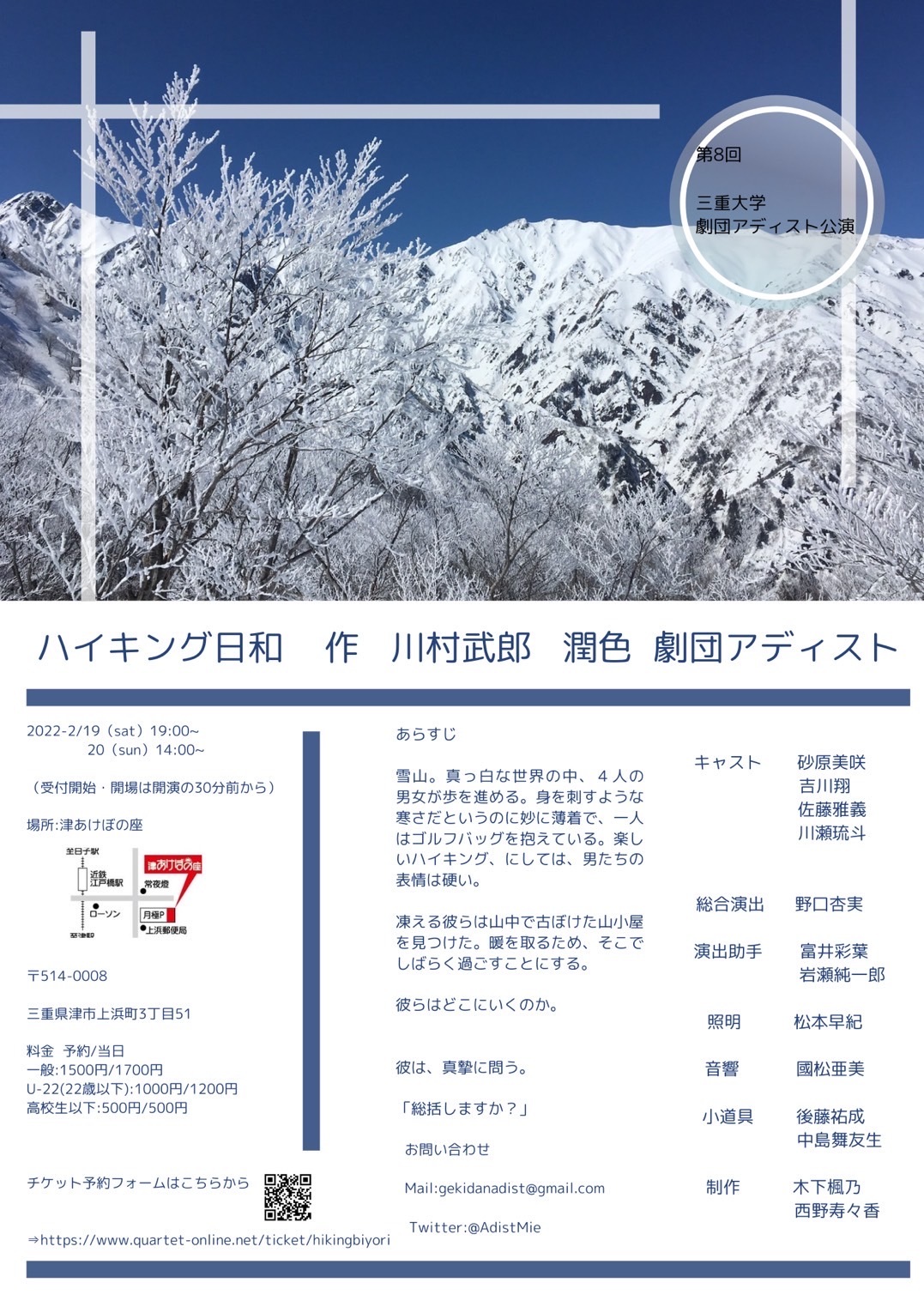 三重大学 劇団アディスト チケット予約へ