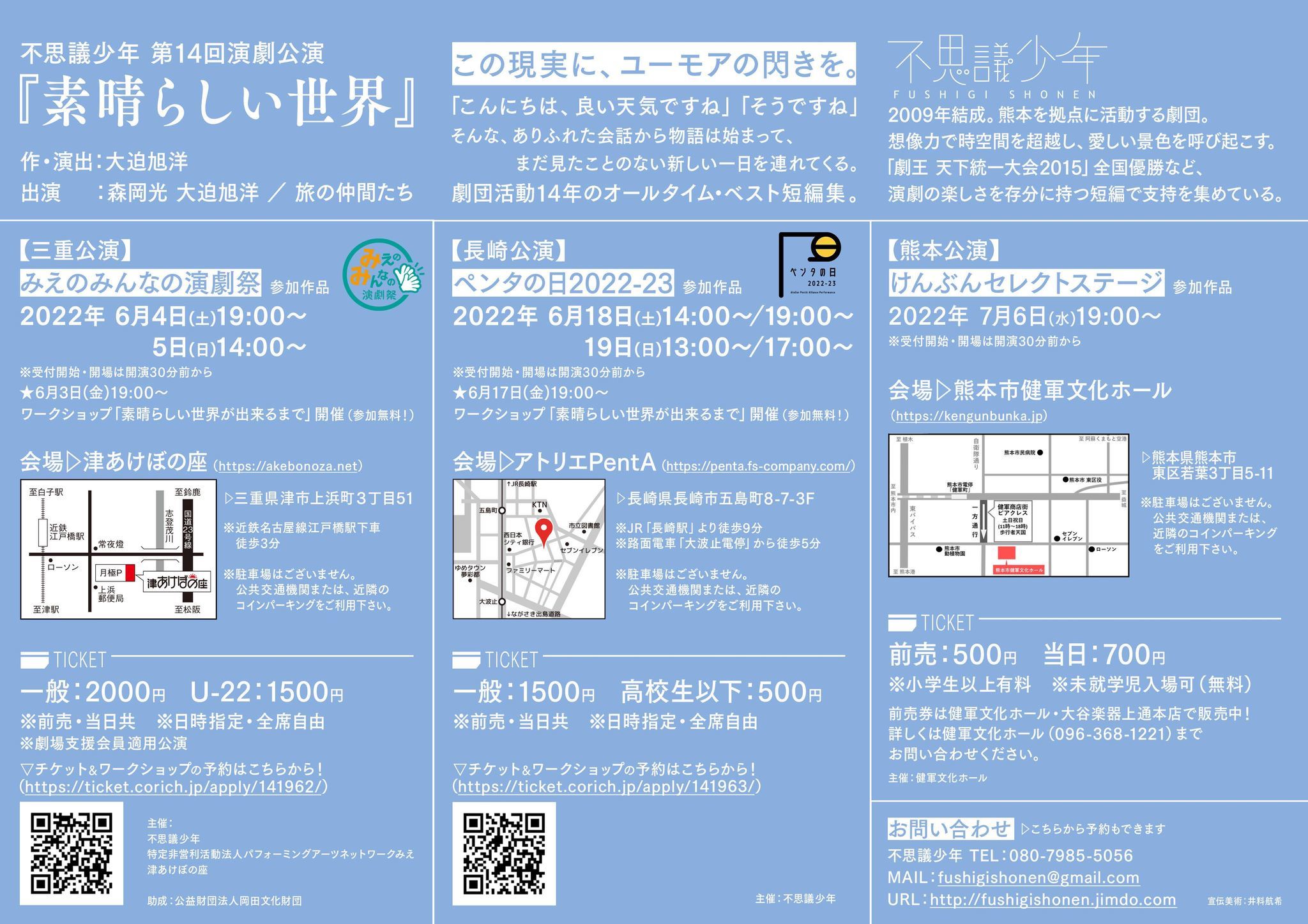 不思議少年「素晴らしい世界」」三重公演チケット予約へ