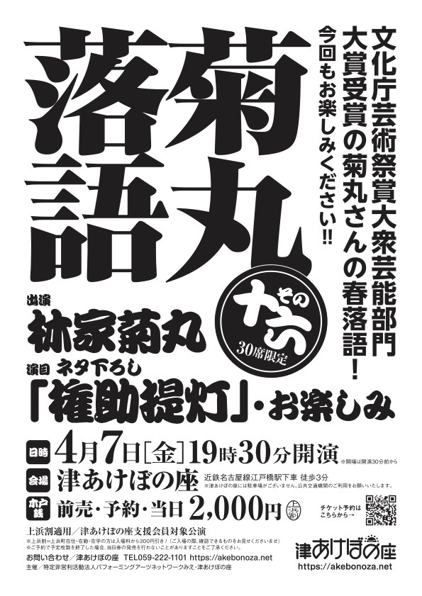 菊丸落語 大きな賞を引っ提げて春落語!!