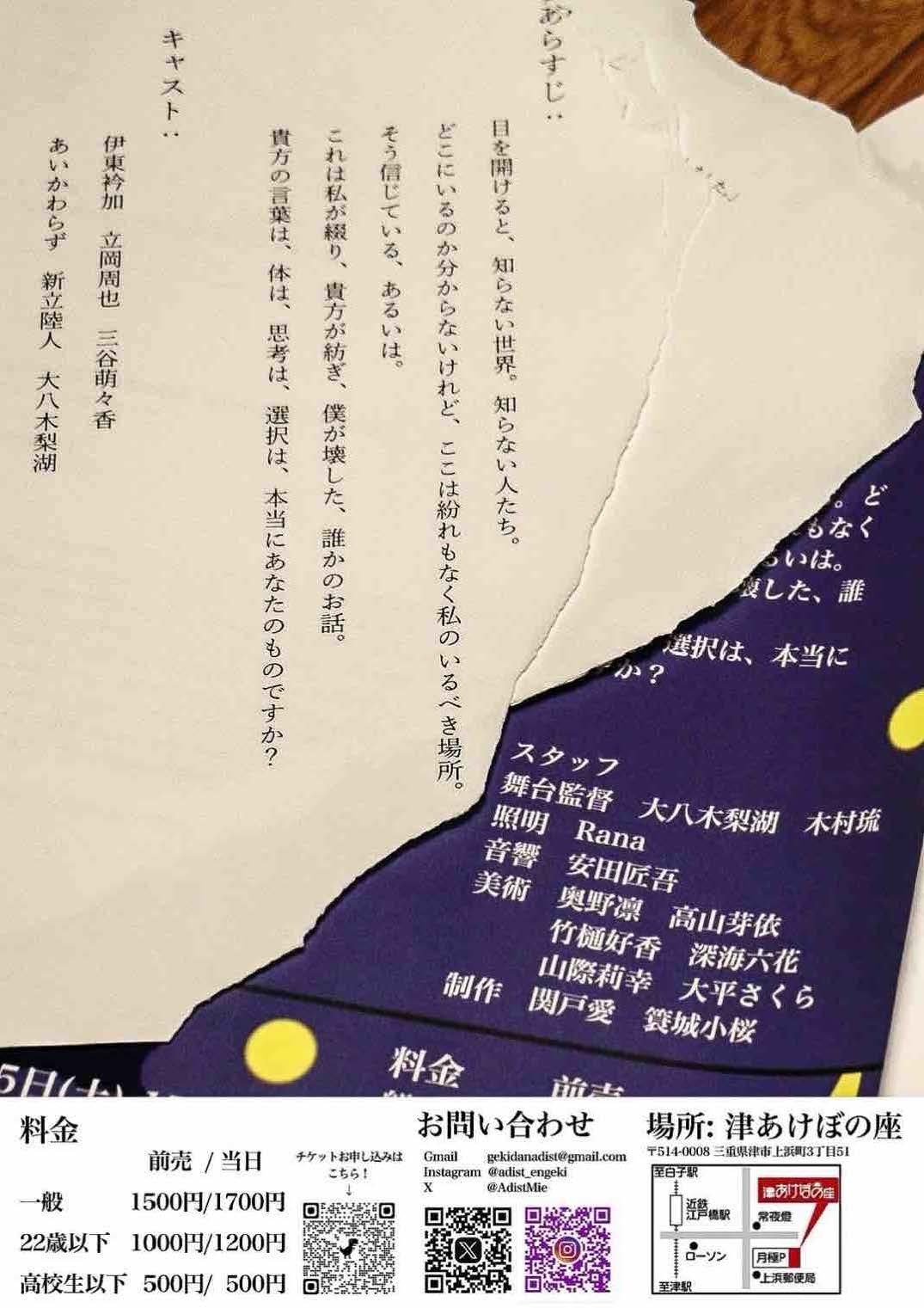 三重大学 劇団アディスト チケット予約へ
