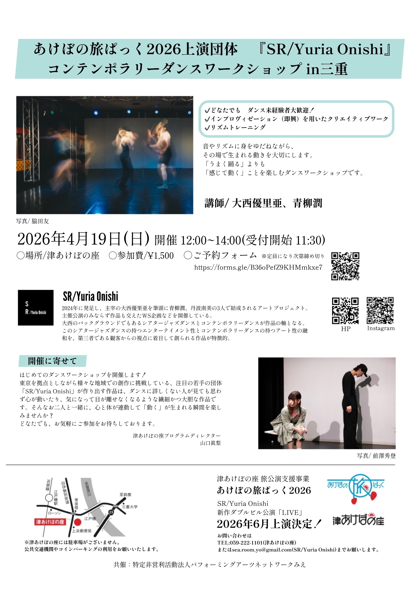 SR/Yuria Onishi コンテンポラリーダンスワークショップin三重 申込みへ