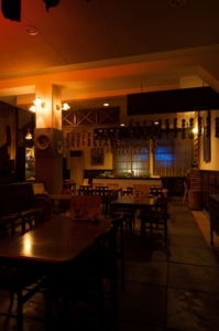 老舗洋食店を感じさせる店内で上演されるのは、青年団・山内健司による一人芝居「舌切り雀」。