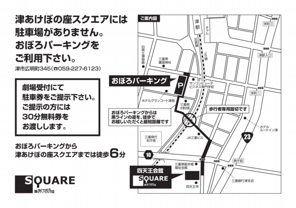 提携有料駐車場:おぼろパーキング(津市広明町345 TEL059-227-6123)